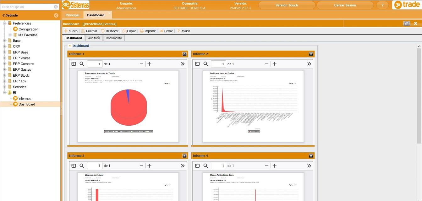 - Multi-empresa, Multi-divisa, Multi-almacén, Multi-usuario.